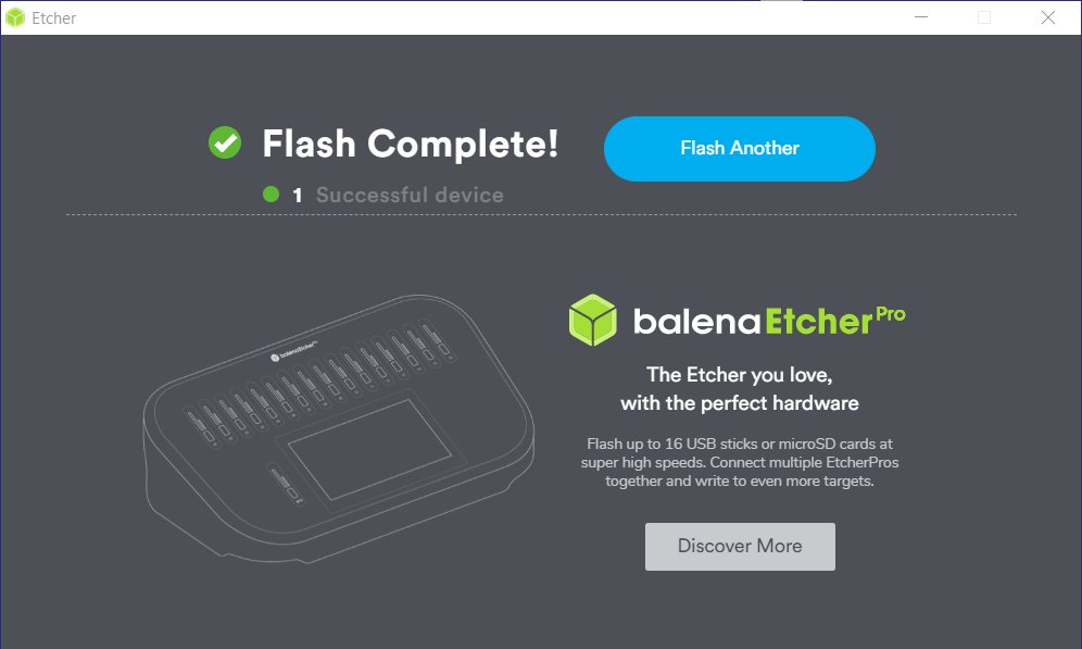 Il est temps de lancer balenaEtcher. Choisissez l’image puis le lecteur contenant la carte mémoire. Le bouton Flash! deviendra actif.