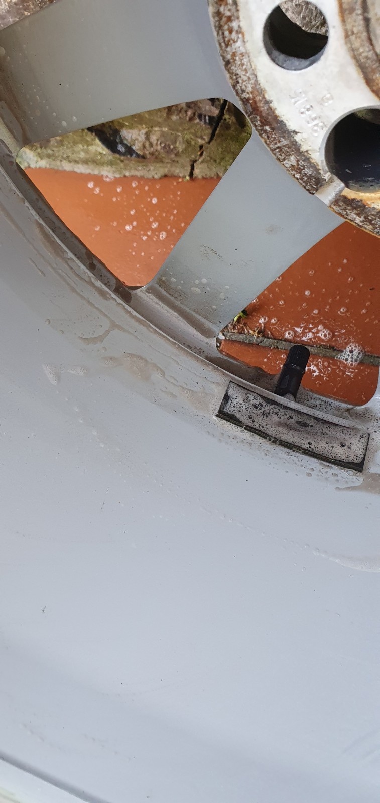 - Régler la mousse sur le maximum et arroser les jantes, en s’assurant qu’elle soient bien posées.