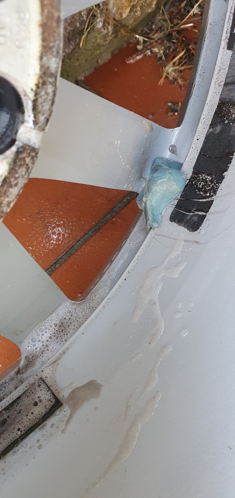 - Pour éliminer les plus petits résidus / contaminants, formez un disque avec la clay bar et aspergez de nouveau au nettoyant jantes avant de frotter encore et encore (et oui… pas de grand secret);