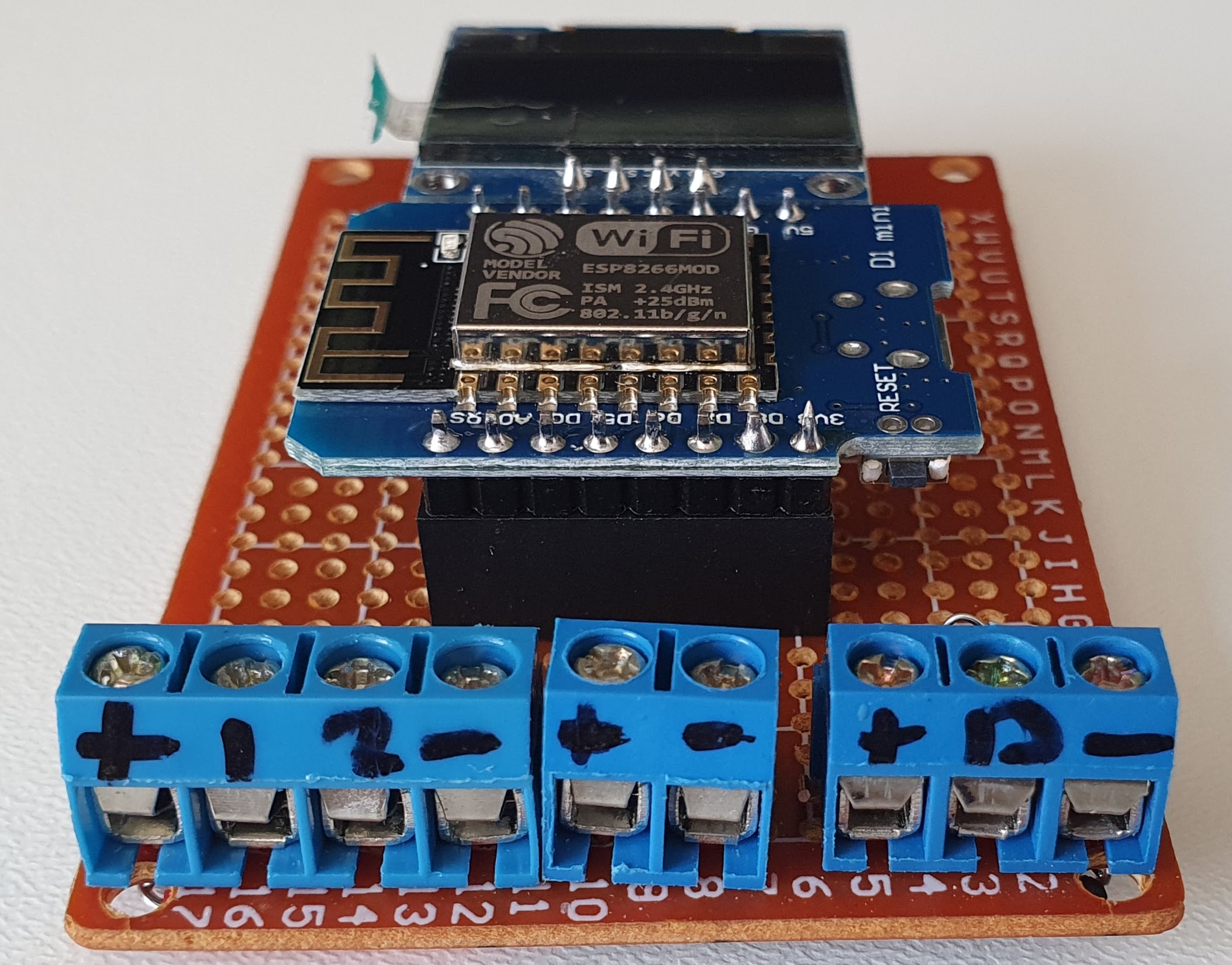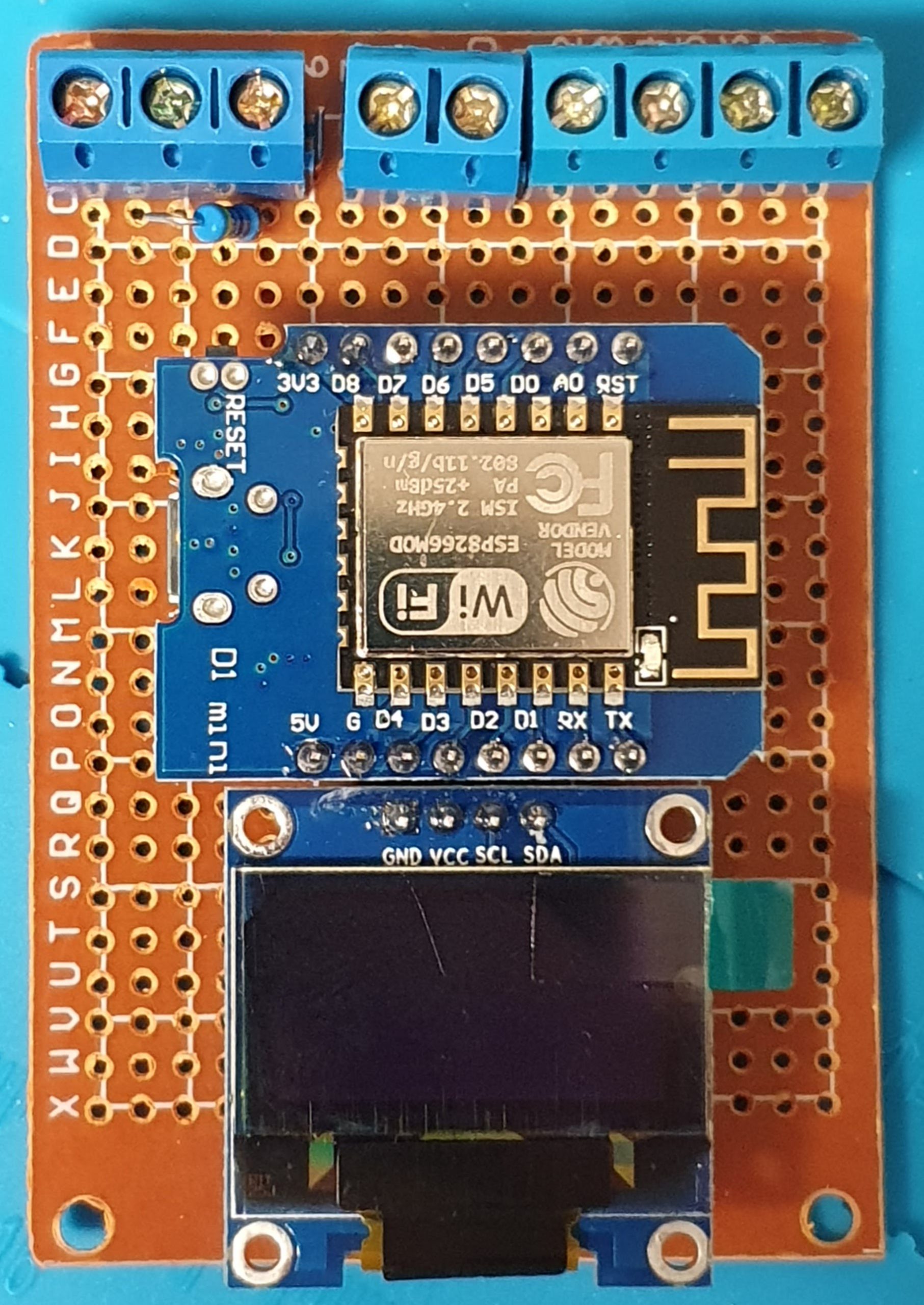 Pour me faciliter la vie lors de la connexion du bus I2C pour l’écran OLED, j’ai inversé les pins D1/D2 via le micrologiciel. Les connexions sont ainsi :