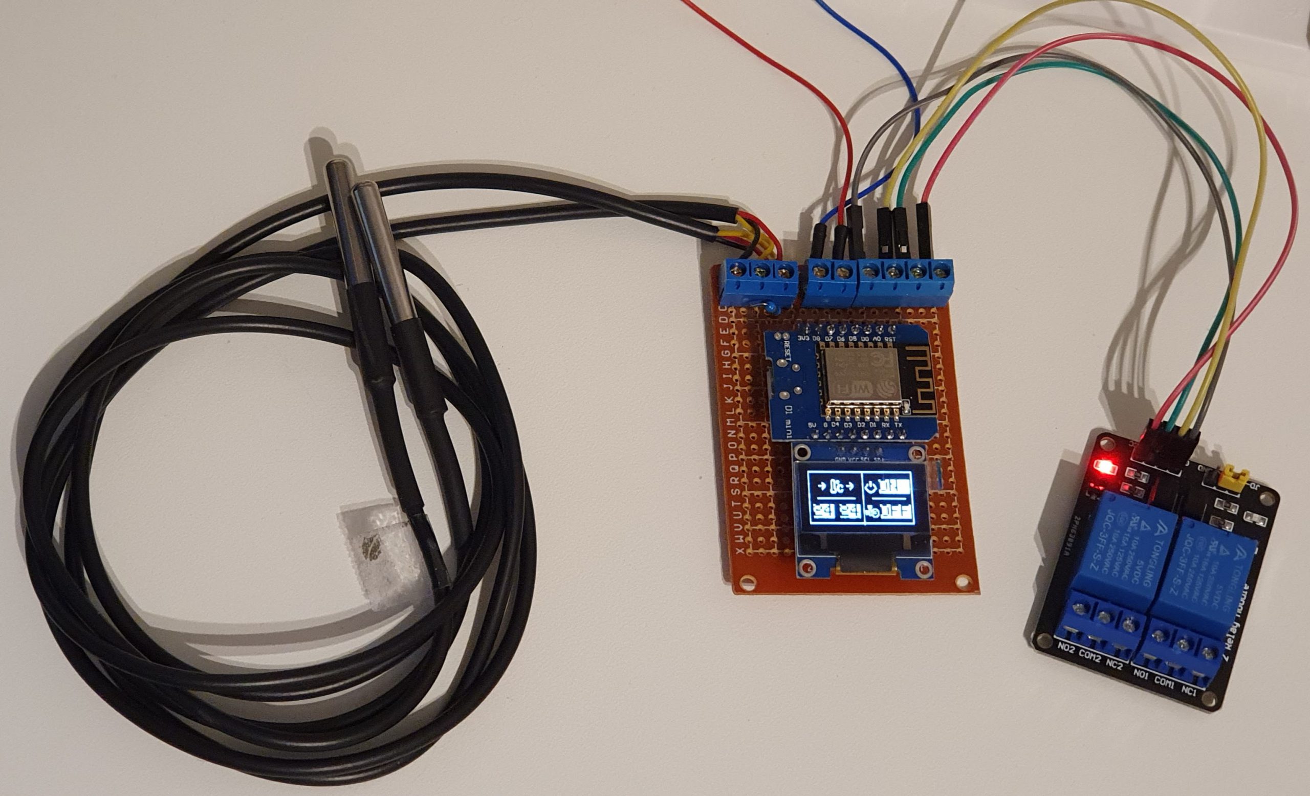 - L’écran de 0.96″ donne les informations de base (températures, états des relais);